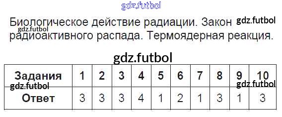 Готовые домашние задания по Физике за 9 класс Громцева Тесты УМК 2017 ФГОС - Глава 4. Строение атома и атомного ядра Биологическое действие радиации. Закон радиоактивного распада. Термоядерная реакция