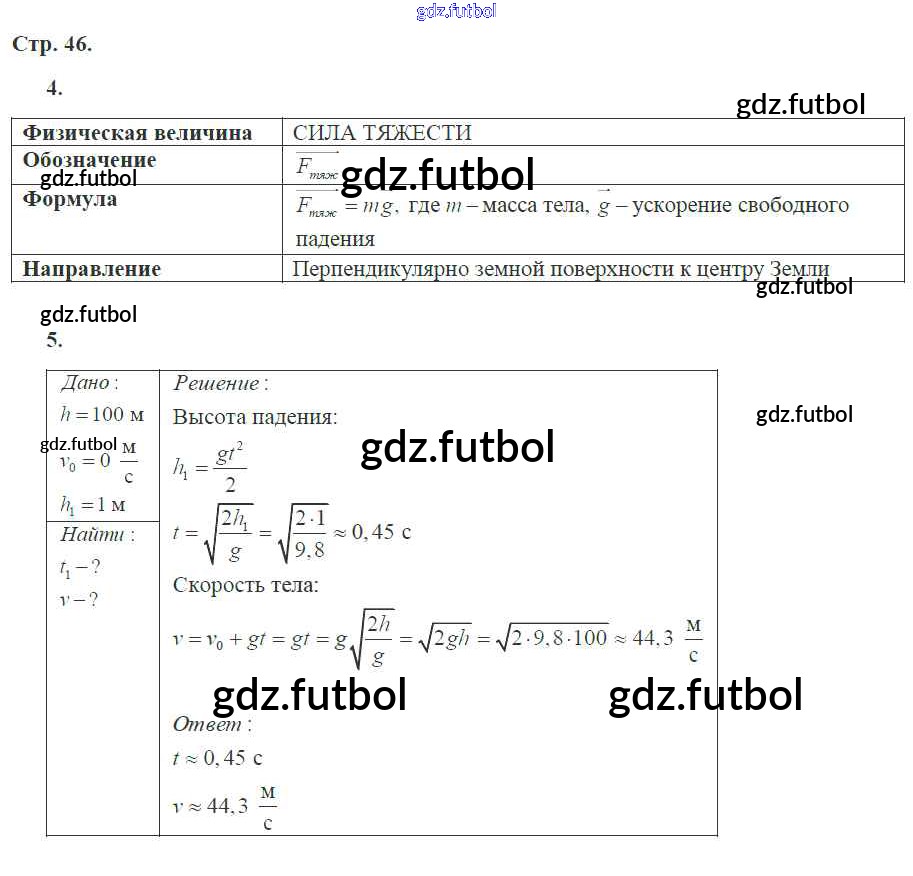 Готовые домашние задания по Физике за 9 класс Касьянов Рабочая тетрадь УМК 2017 ФГОС - Страницы 46