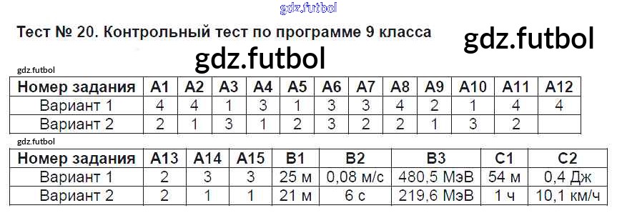 Готовые домашние задания по Физике за 9 класс Лозовенко Контрольно-измерительные материалы (КИМ) 2016 ФГОС - Тесты 20