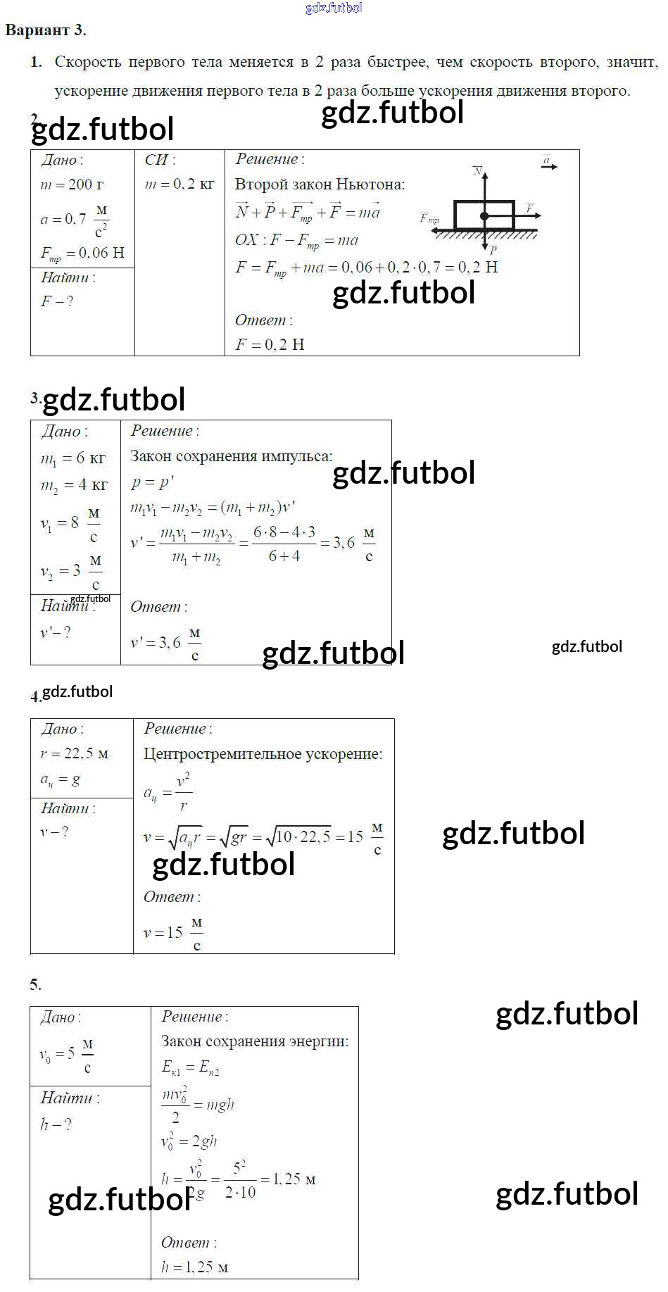 Готовые домашние задания по Физике за 9 класс Марон Самостоятельные и контрольные работы 2018 ФГОС - КР-1. Варианты 3