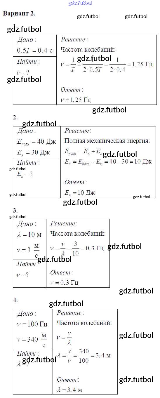 Готовые домашние задания по Физике за 9 класс Марон Самостоятельные и контрольные работы 2018 ФГОС - КР-2. Варианты 2