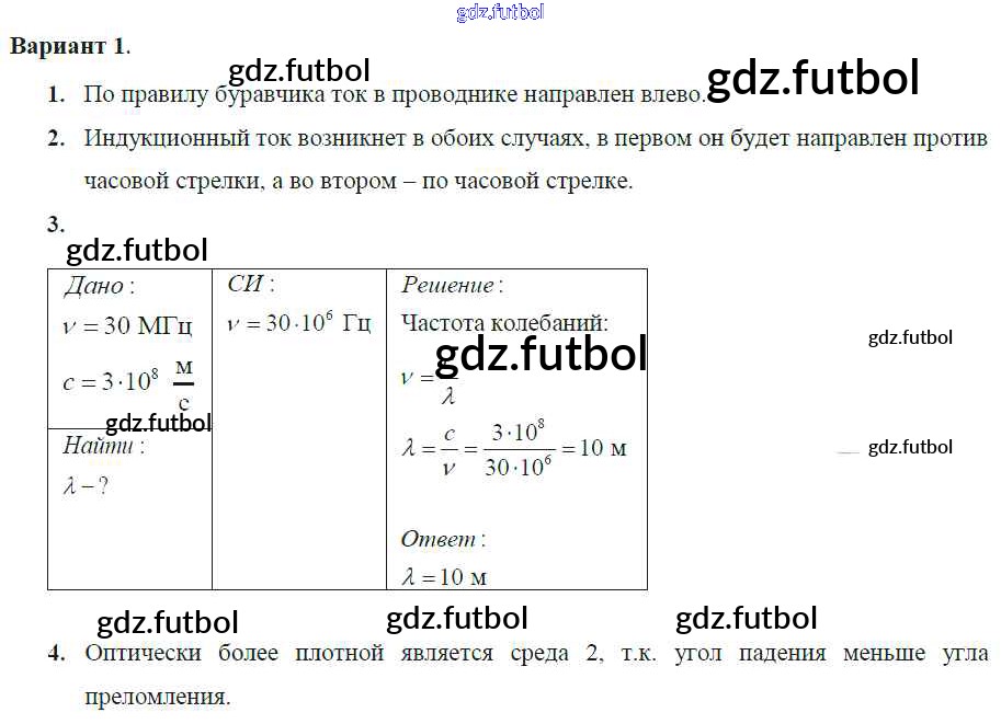 Готовые домашние задания по Физике за 9 класс Марон Самостоятельные и контрольные работы 2018 ФГОС - КР-3. Варианты 1