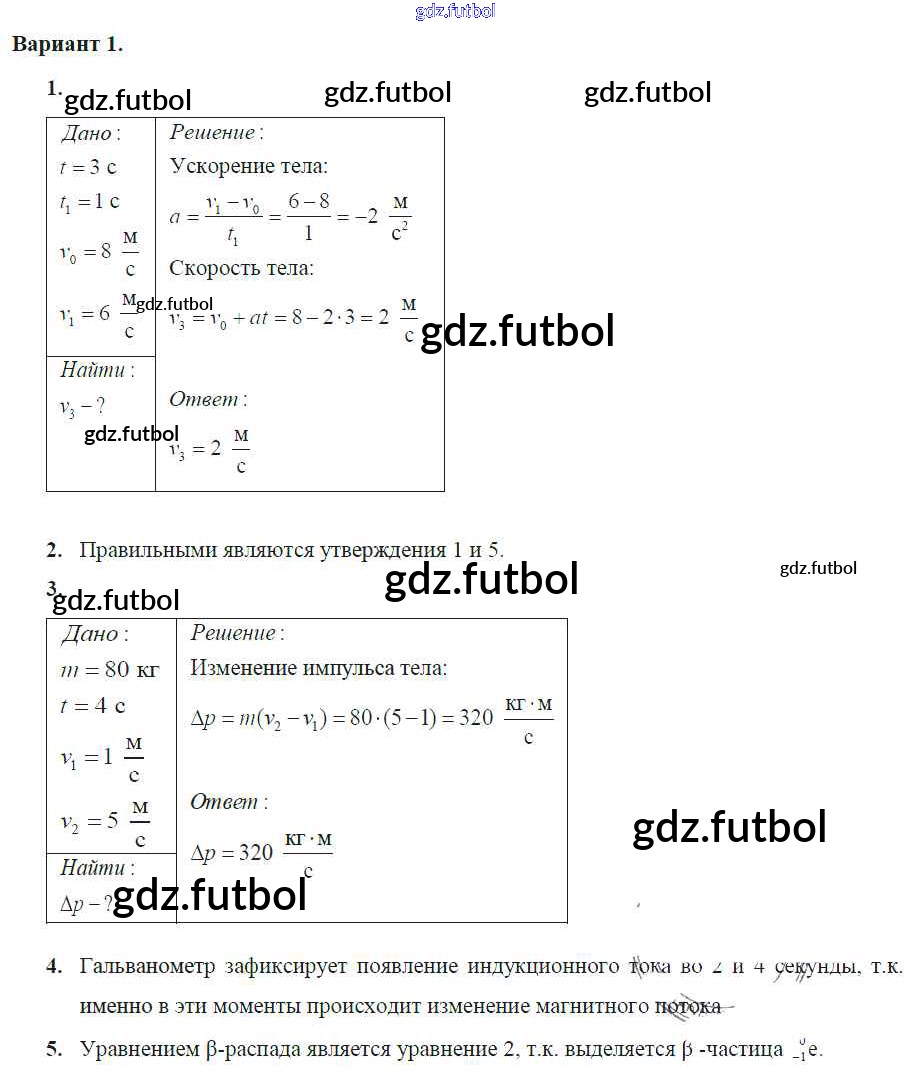 Готовые домашние задания по Физике за 9 класс Марон Самостоятельные и контрольные работы 2018 ФГОС - КР-6. Варианты 1
