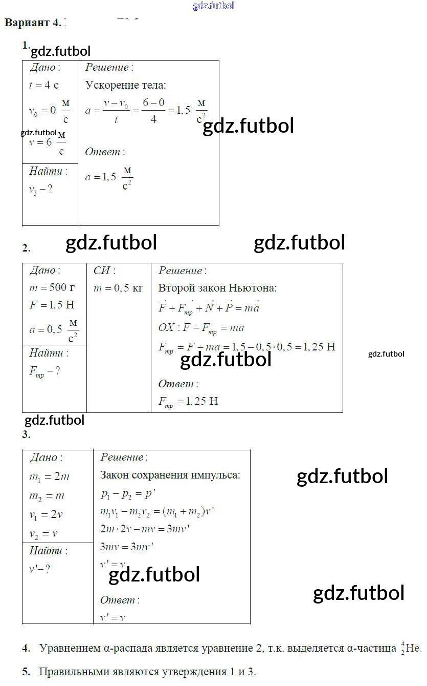 Готовые домашние задания по Физике за 9 класс Марон Самостоятельные и контрольные работы 2018 ФГОС - КР-6. Варианты 4