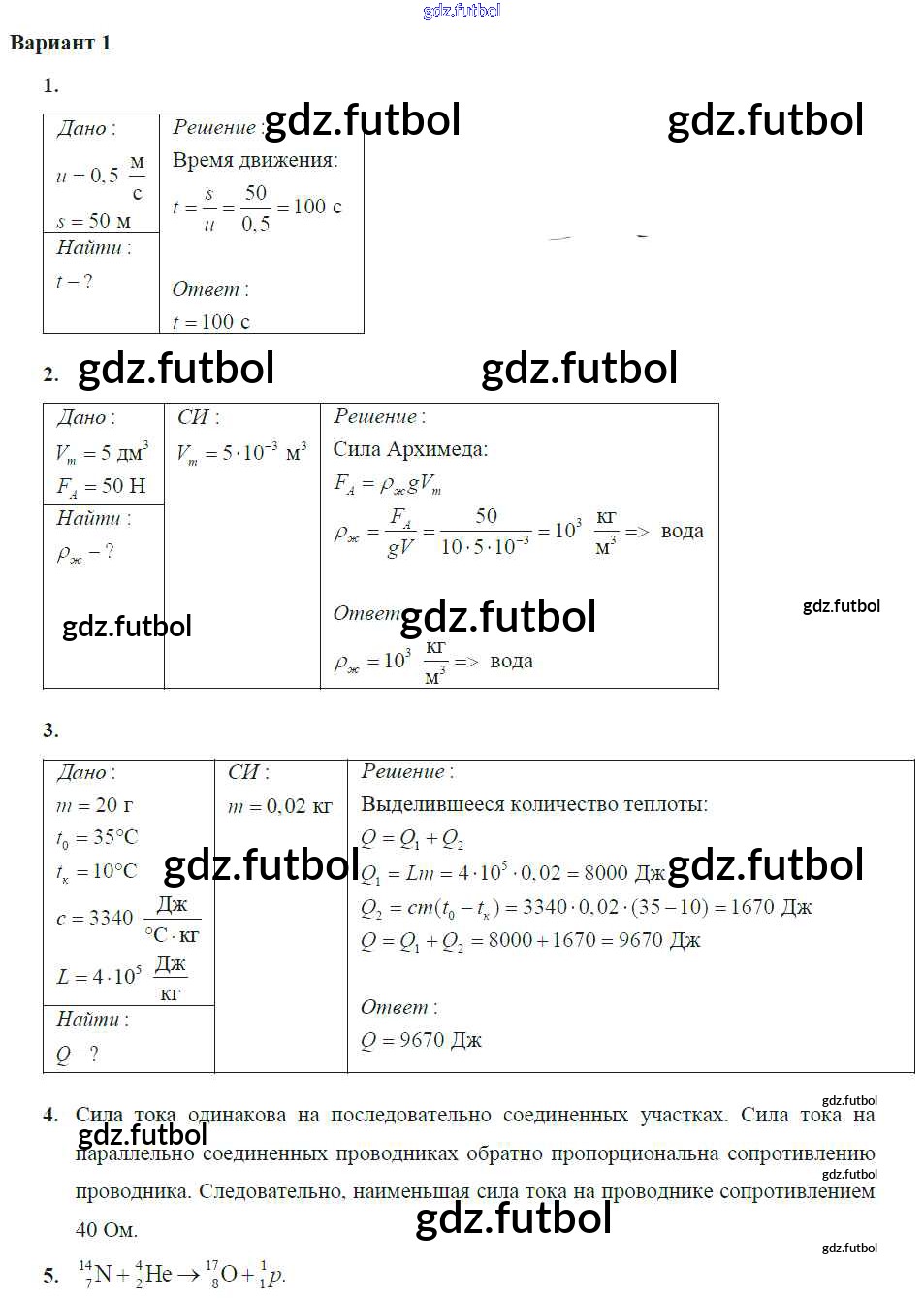 Готовые домашние задания по Физике за 9 класс Марон Самостоятельные и контрольные работы 2018 ФГОС - КР-7. Варианты 1