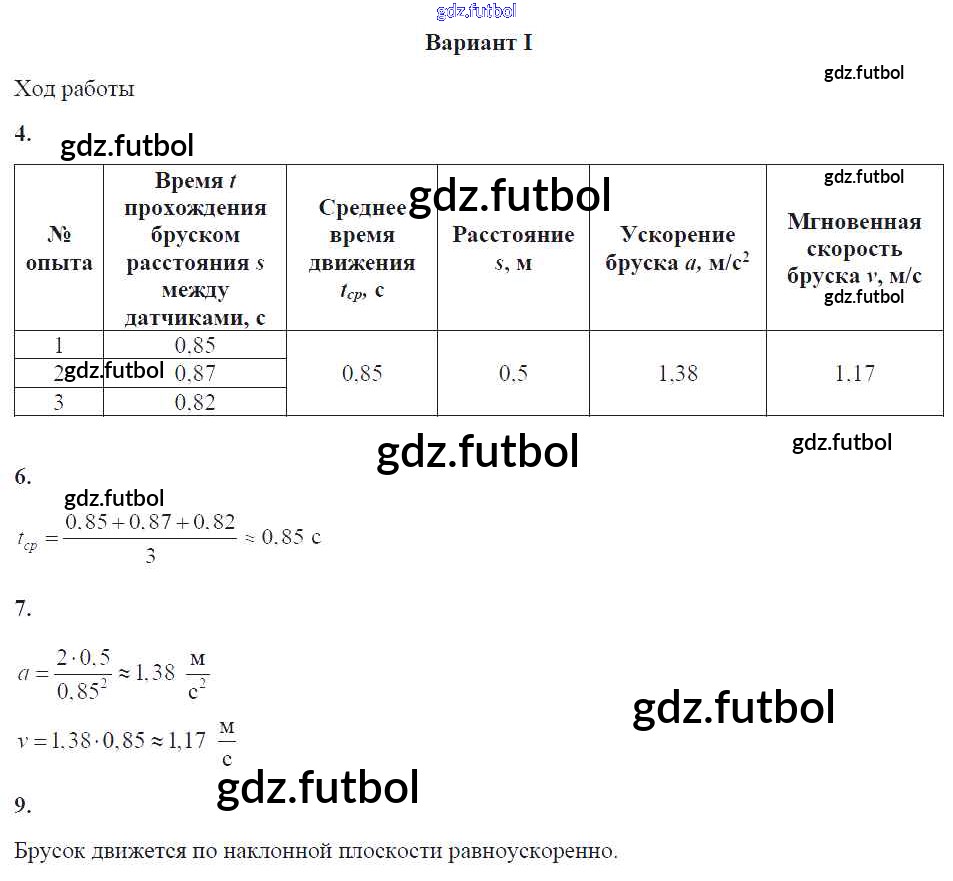 Готовые домашние задания по Физике за 9 класс Минькова Тетрадь для лабораторных работ УМК 2017 ФГОС - Лабораторная работа 1. Варианты 1