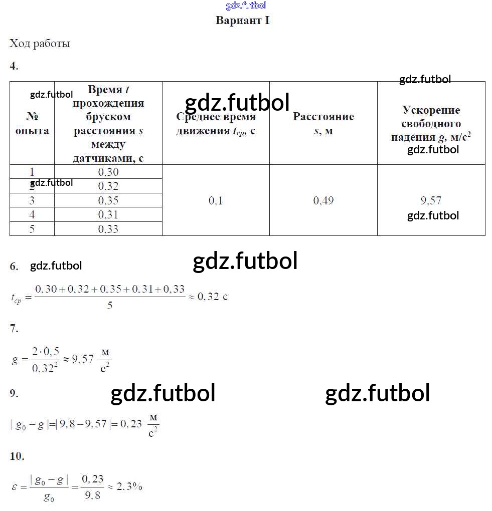 Готовые домашние задания по Физике за 9 класс Минькова Тетрадь для лабораторных работ УМК 2017 ФГОС - Лабораторная работа 2. Варианты 1