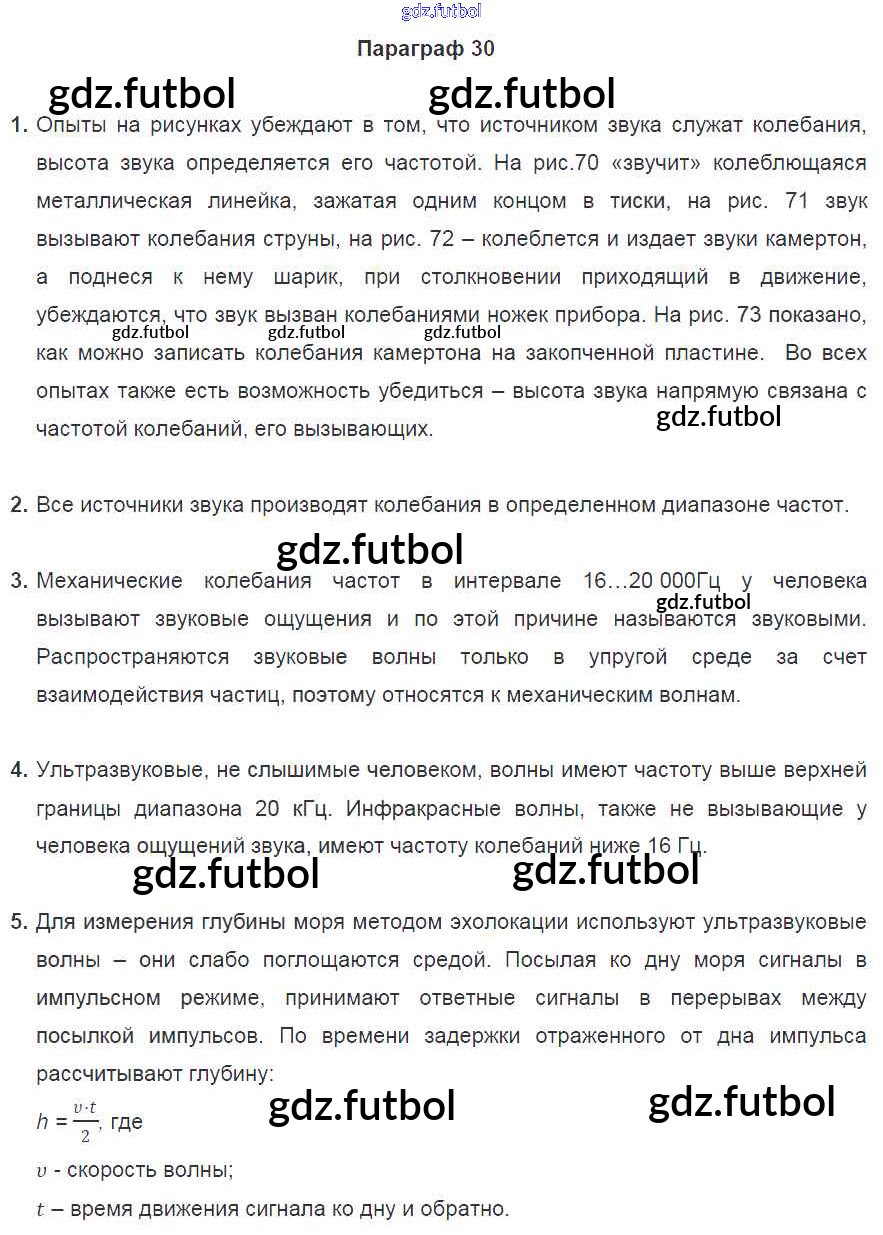 Готовые домашние задания по Физике за 9 класс Перышкин Учебник   2014 ФГОС - Параграфы 30