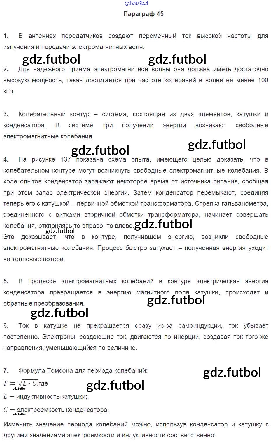 Готовые домашние задания по Физике за 9 класс Перышкин Учебник 2014 ФГОС - Параграфы 45