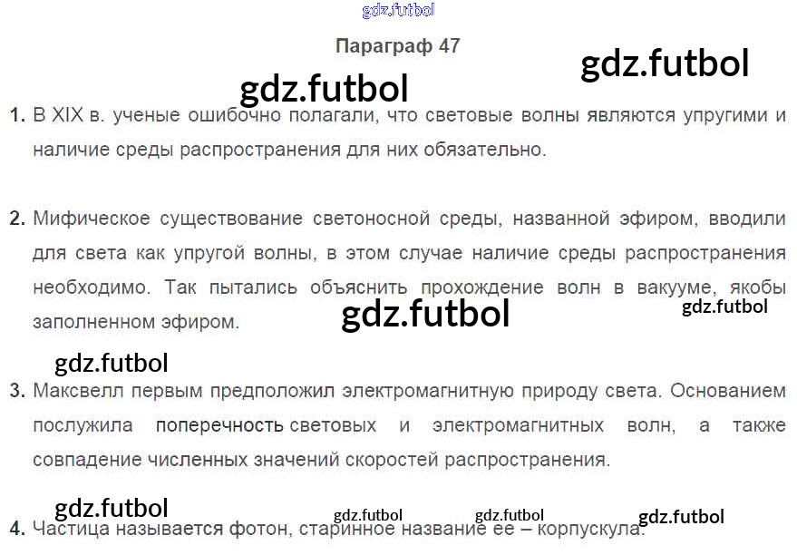 Готовые домашние задания по Физике за 9 класс Перышкин Учебник 2014 ФГОС - Параграфы 47