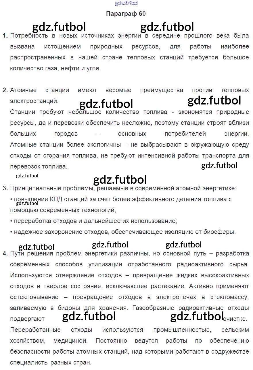 Готовые домашние задания по Физике за 9 класс Перышкин Учебник   2014 ФГОС - Параграфы 60