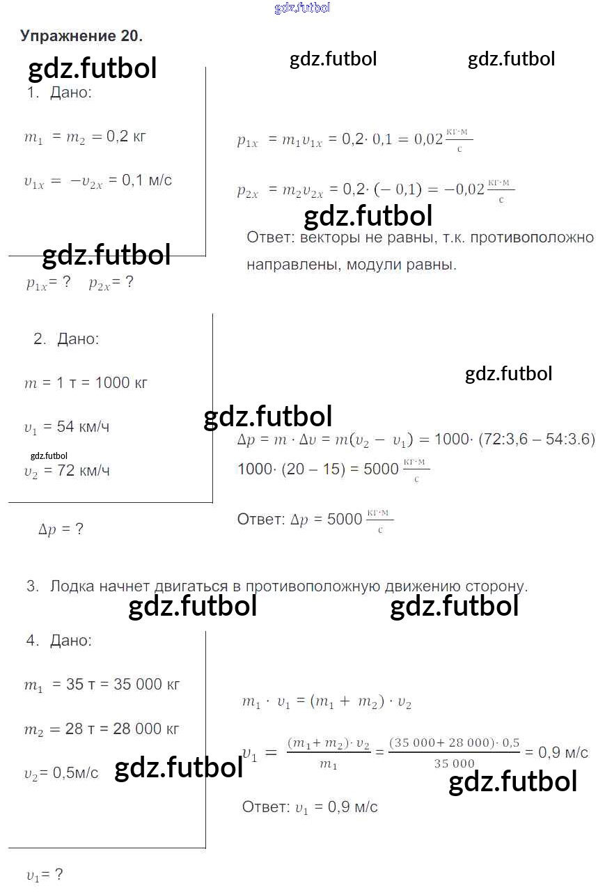 Готовые домашние задания по Физике за 9 класс Перышкин Учебник 2014 ФГОС - Упражнения 20