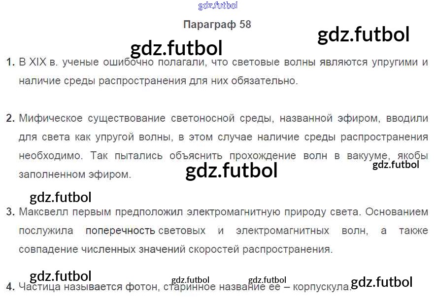 Готовые домашние задания по Физике за 9 класс Перышкин Учебник 2014 ФГОС - Параграфы 58