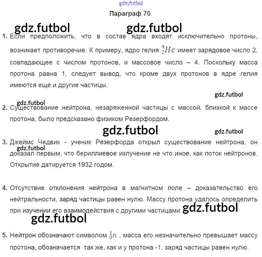 Готовые домашние задания по Физике за 9 класс Перышкин Учебник 2014 ФГОС - Параграфы 70