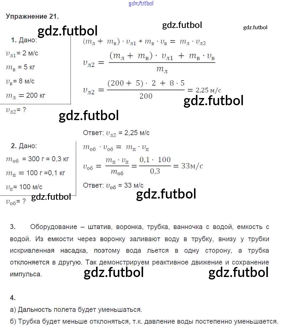 Готовые домашние задания по Физике за 9 класс Перышкин Учебник 2014 ФГОС - Упражнения 21