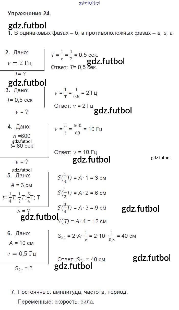 Готовые домашние задания по Физике за 9 класс Перышкин Учебник 2014 ФГОС - Упражнения 24