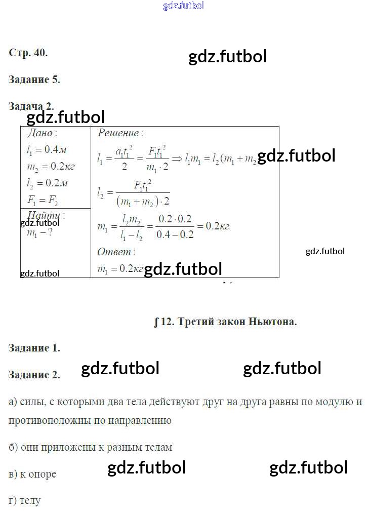 Готовые домашние задания по Физике за 9 класс Перышкин Рабочая тетрадь УМК 2017 ФГОС - Страницы 40