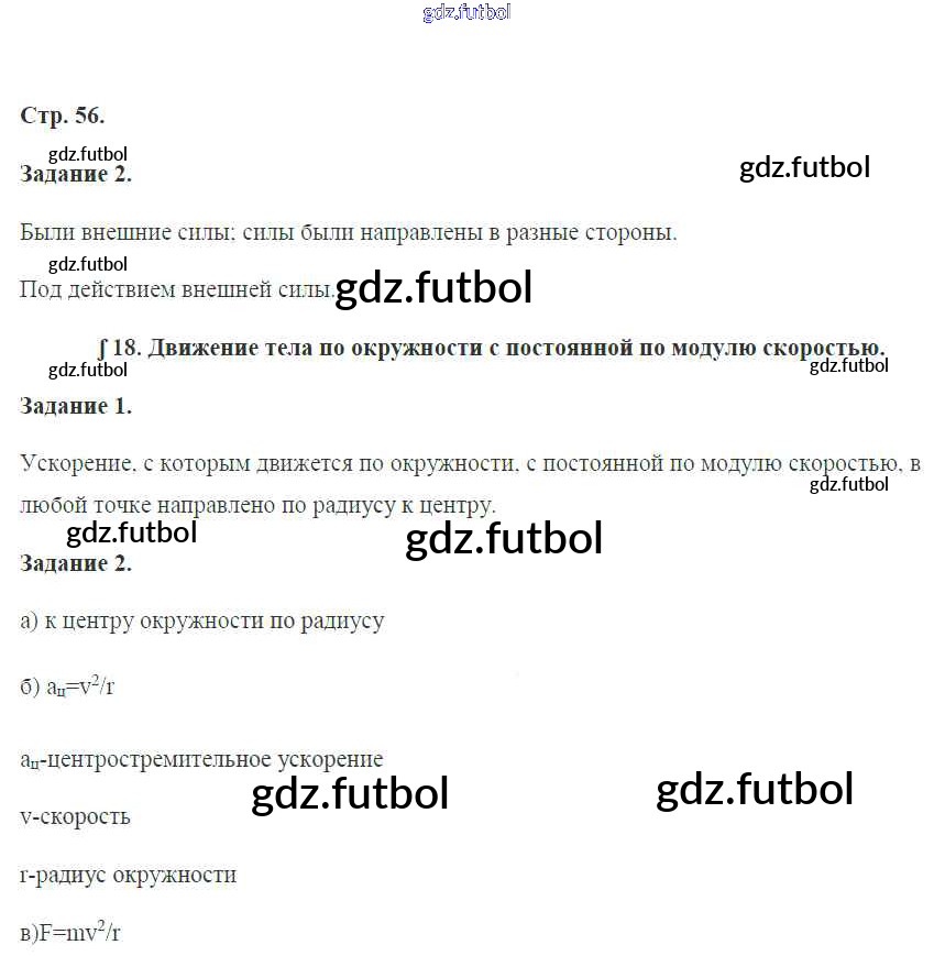 Готовые домашние задания по Физике за 9 класс Перышкин Рабочая тетрадь УМК 2017 ФГОС - Страницы 56