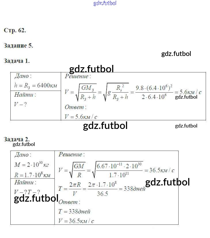 Готовые домашние задания по Физике за 9 класс Перышкин Рабочая тетрадь УМК 2017 ФГОС - Страницы 62