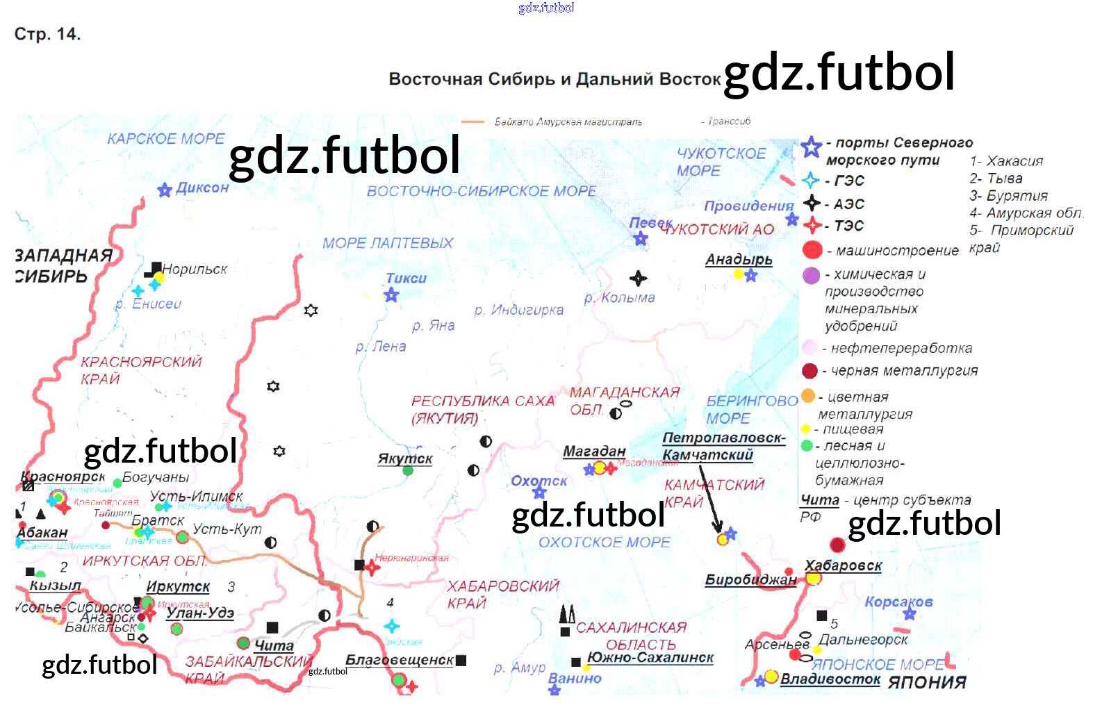 Готовые домашние задания по Географии за 9 класс Приваловский Контурные карты 2020 ФГОС - Страницы стр.14. Восточная Сибирь и Дальний Восток