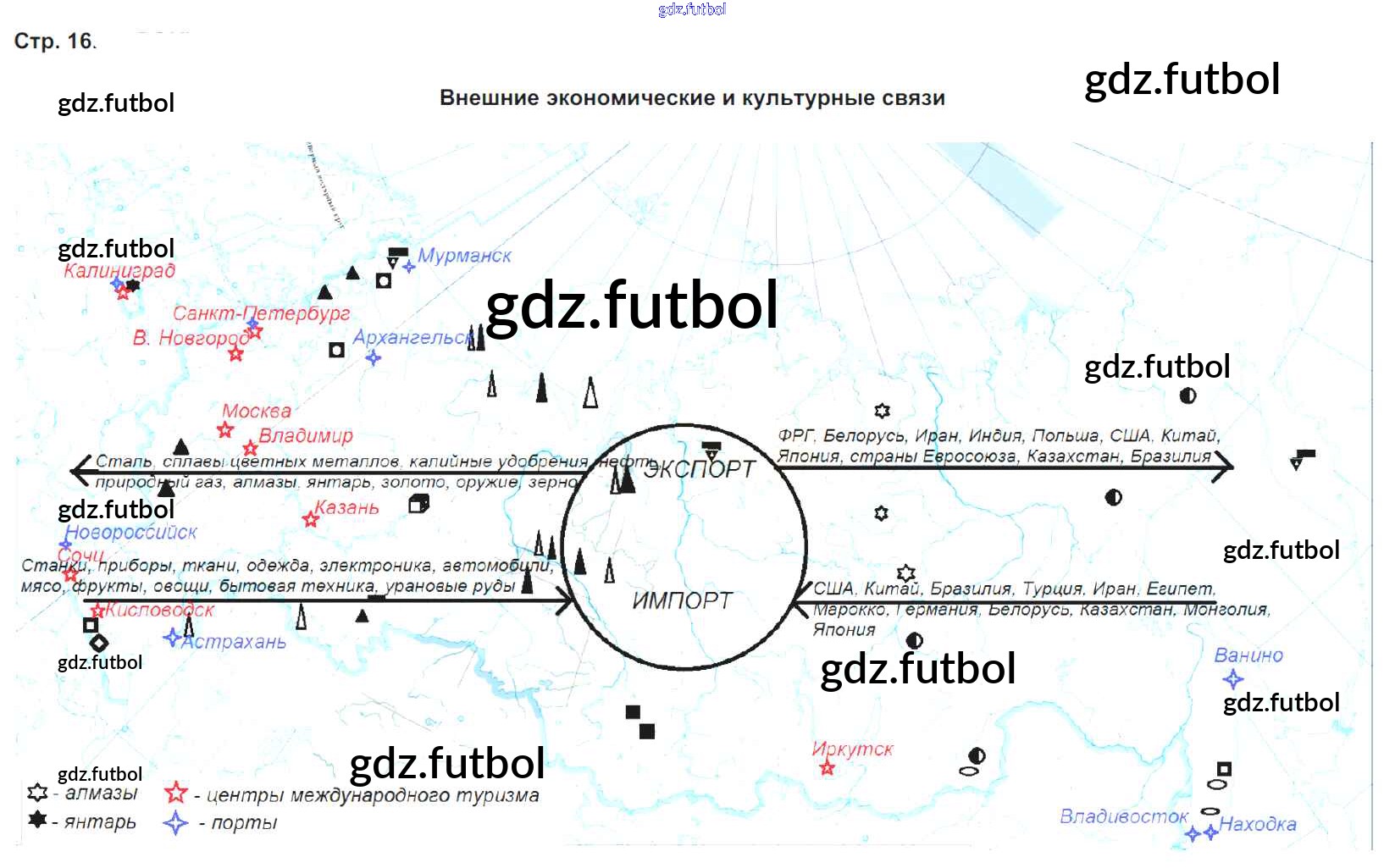 Готовые домашние задания по Географии за 9 класс Приваловский Контурные карты 2020 ФГОС - Страницы стр.16. Внешние экономические и культурные связи