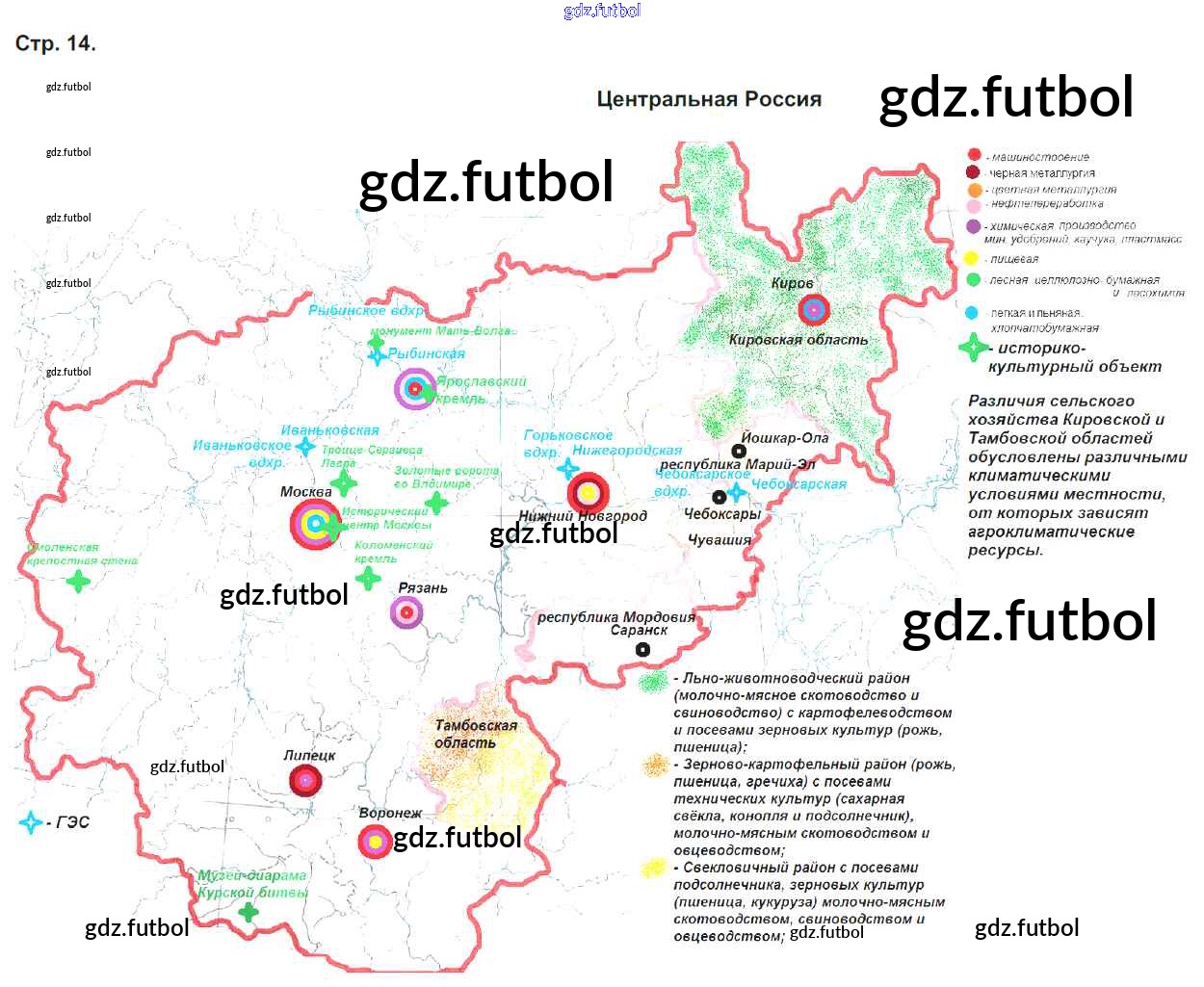 Готовые домашние задания по Географии за 9 класс Приваловский Контурные карты 2020 ФГОС - Страницы стр.14. Центральная Россия