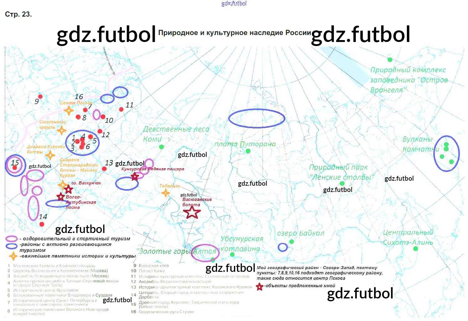 Готовые домашние задания по Географии за 9 класс Приваловский Контурные карты 2020 ФГОС - Страницы стр.23. Природное и культурное наследие России