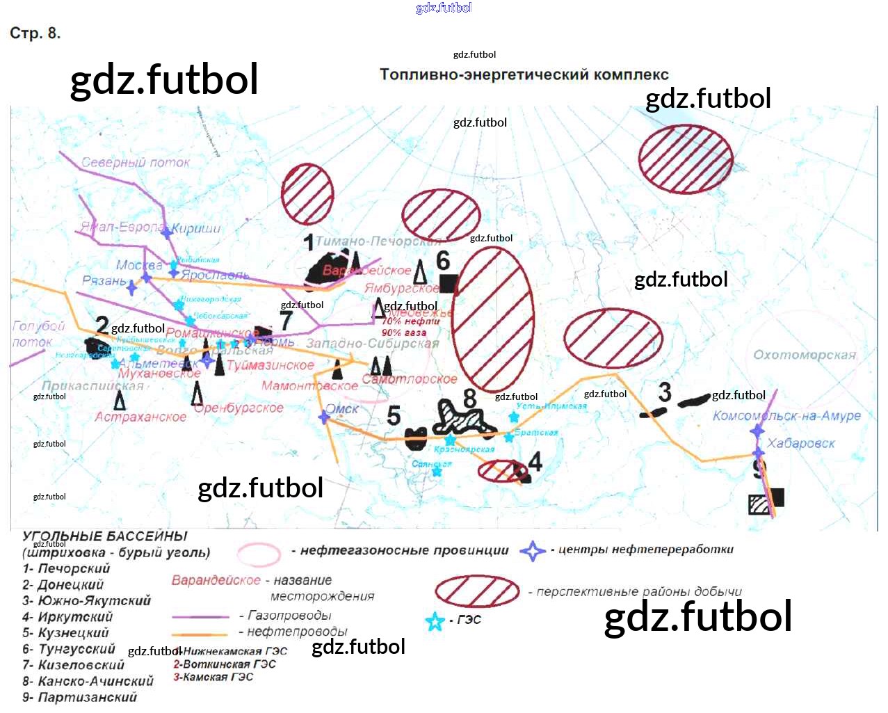 Готовые домашние задания по Географии за 9 класс Приваловский Контурные карты 2020 ФГОС - Страницы стр.8. Топливо-энергетический комплекс