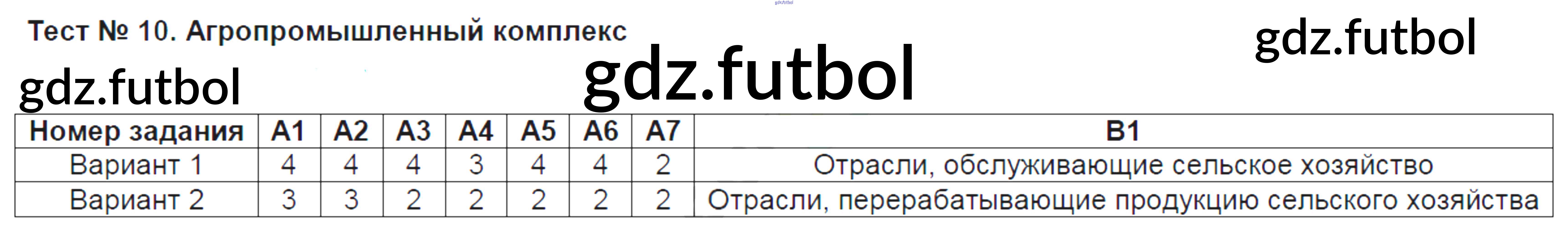 Готовые домашние задания по Географии за 9 класс Жижина Контрольно-измерительные материалы (КИМ) 2017 ФГОС - Тесты Тест №10. Агропромышленный комплекс