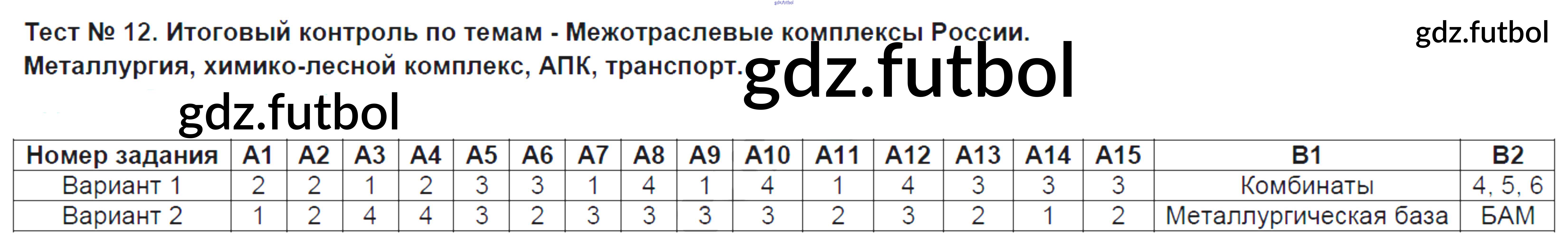 Готовые домашние задания по Географии за 9 класс Жижина Контрольно-измерительные материалы (КИМ) 2017 ФГОС - Тесты Тест №12. Итоговый контроль по темам - Межотраслевые комплексы России
