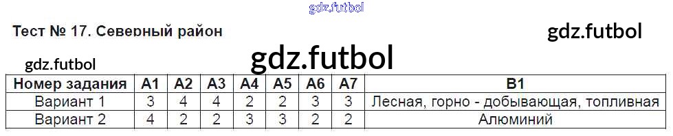 Готовые домашние задания по Географии за 9 класс Жижина Контрольно-измерительные материалы (КИМ) 2017 ФГОС - Тесты Тест №17. Северный район