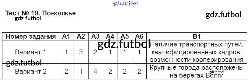 Готовые домашние задания по Географии за 9 класс Жижина Контрольно-измерительные материалы (КИМ) 2017 ФГОС - Тесты Тест №19. Поволжье