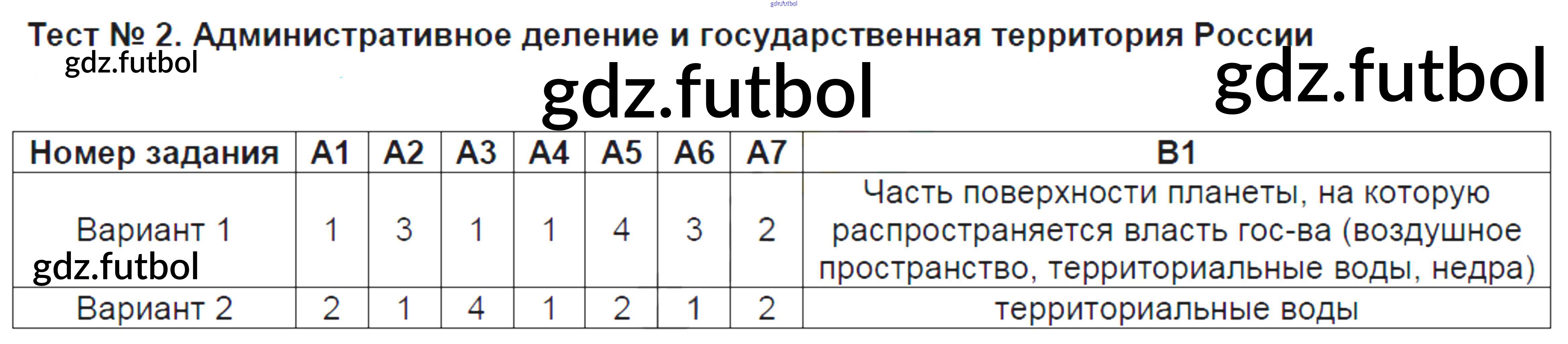Готовые домашние задания по Географии за 9 класс Жижина Контрольно-измерительные материалы (КИМ) 2017 ФГОС - Тесты Тест №2. Административное деление и государственная территория России