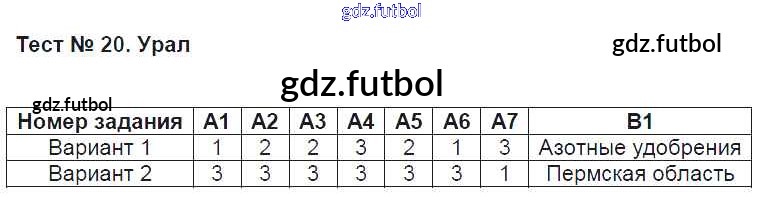 Готовые домашние задания по Географии за 9 класс Жижина Контрольно-измерительные материалы (КИМ) 2017 ФГОС - Тесты Тест №20. Урал