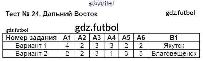 Готовые домашние задания по Географии за 9 класс Жижина Контрольно-измерительные материалы (КИМ) 2017 ФГОС - Тесты Тест №24. Дальний Восток