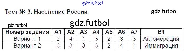 Готовые домашние задания по Географии за 9 класс Жижина Контрольно-измерительные материалы (КИМ) 2017 ФГОС - Тесты Тест №3. Население России