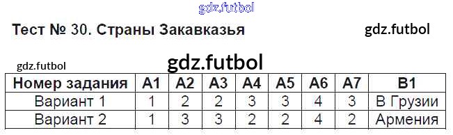 Готовые домашние задания по Географии за 9 класс Жижина Контрольно-измерительные материалы (КИМ) 2017 ФГОС - Тесты Тест №30. Страны Закавказья