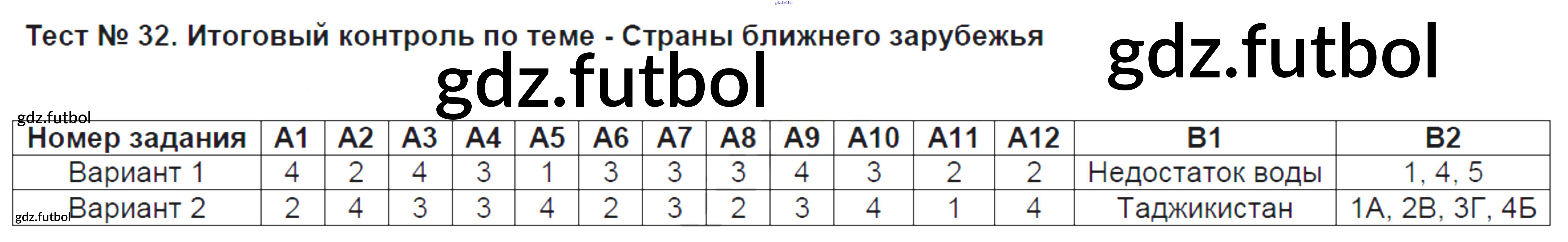 Готовые домашние задания по Географии за 9 класс Жижина Контрольно-измерительные материалы (КИМ) 2017 ФГОС - Тесты Тест №32. Итоговый контроль по теме - Страны ближнего зарубежья