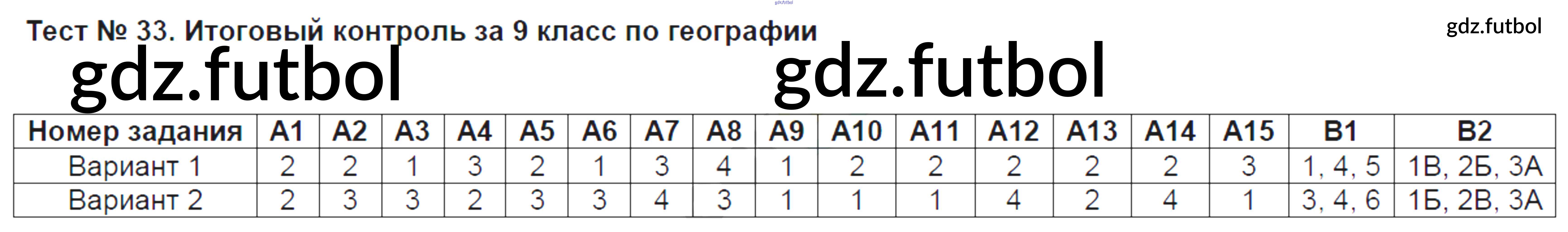 Готовые домашние задания по Географии за 9 класс Жижина Контрольно-измерительные материалы (КИМ) 2017 ФГОС - Тесты Тест №33. Итоговый контроль за 9 класс по географии