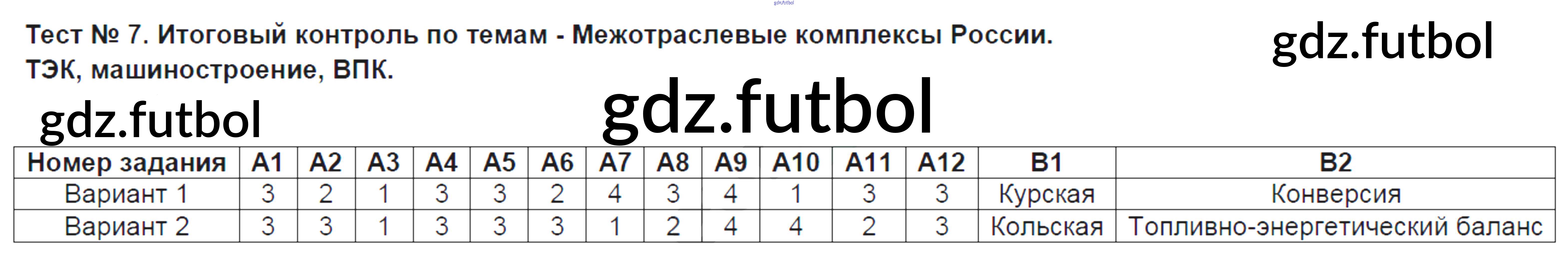 Готовые домашние задания по Географии за 9 класс Жижина Контрольно-измерительные материалы (КИМ) 2017 ФГОС - Тесты Тест №7. Итоговый контроль по темам - Межотраслевые комплексы России