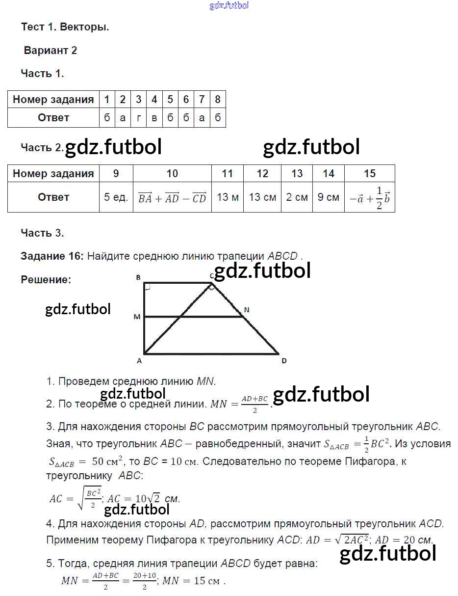 Готовые решения задач (ГДЗ) по Геометрии девятый класс Фарков Тесты УМК 2016 ФГОС - Тема 1. Варианты 2 доступны для различных учебных материалов. У нас вы сможете найти авторские решения для всех пособий, предназначенных для школьников. Не секрет, что в настоящее время многие школьники прибегают к использованию готовых решебников, ведь они содержат подробные ответы для каждого упражнения, представленного в учебнике.