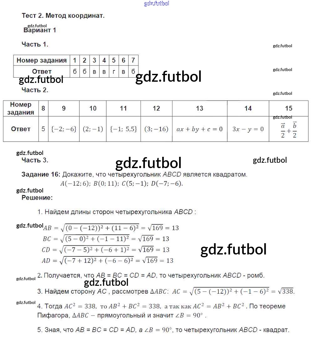 Готовые решения задач (ГДЗ) по Геометрии девятый класс Фарков Тесты УМК 2016 ФГОС - Тема 2. Варианты 1 доступны для различных учебных материалов. У нас вы сможете найти авторские решения для всех пособий, предназначенных для школьников. Не секрет, что в настоящее время многие школьники прибегают к использованию готовых решебников, ведь они содержат подробные ответы для каждого упражнения, представленного в учебнике.
