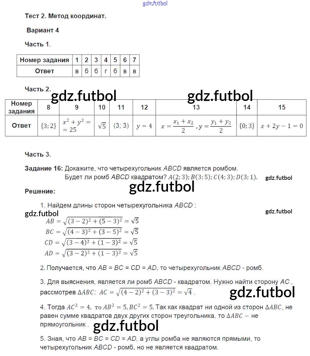 Готовые решения задач (ГДЗ) по Геометрии девятый класс Фарков Тесты УМК 2016 ФГОС - Тема 2. Варианты 4 доступны для различных учебных материалов. У нас вы сможете найти авторские решения для всех пособий, предназначенных для школьников. Не секрет, что в настоящее время многие школьники прибегают к использованию готовых решебников, ведь они содержат подробные ответы для каждого упражнения, представленного в учебнике.