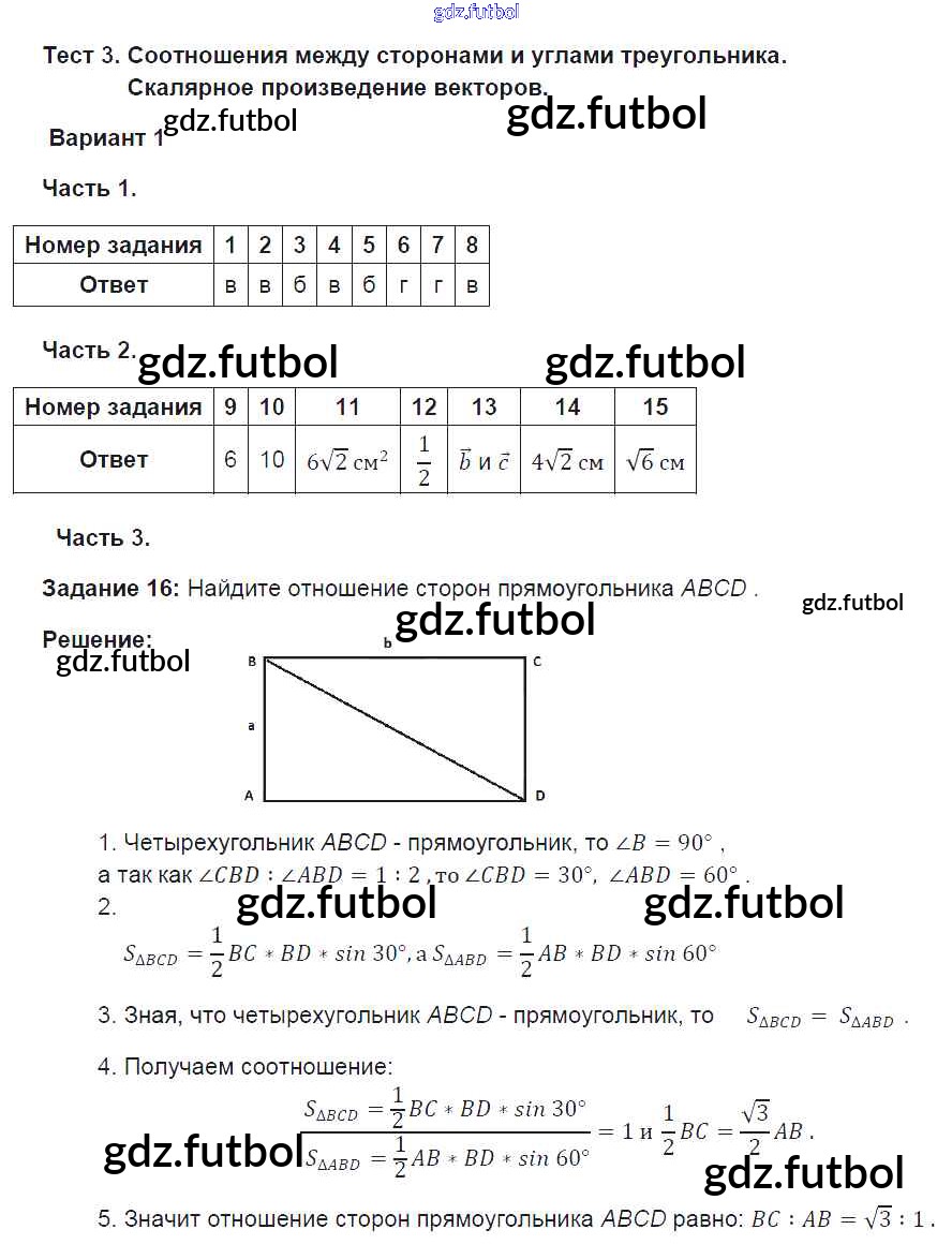 Готовые решения задач (ГДЗ) по Геометрии девятый класс Фарков Тесты УМК 2016 ФГОС - Тема 3. Варианты 1 доступны для различных учебных материалов. У нас вы сможете найти авторские решения для всех пособий, предназначенных для школьников. Не секрет, что в настоящее время многие школьники прибегают к использованию готовых решебников, ведь они содержат подробные ответы для каждого упражнения, представленного в учебнике.