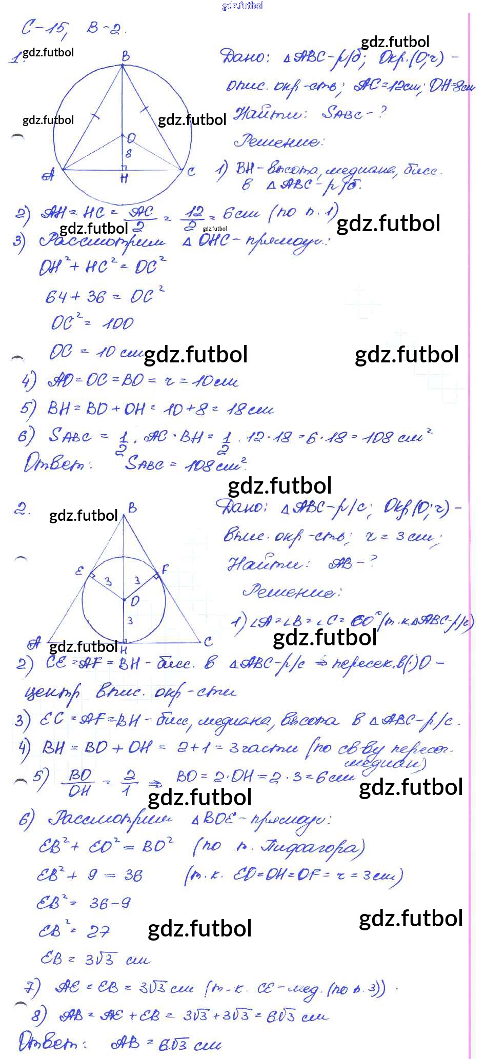 Готовые домашние задания по Геометрии за 9 класс Иченская Самостоятельные и контрольные работы 2017 ФГОС - СР-15. Варианты 2