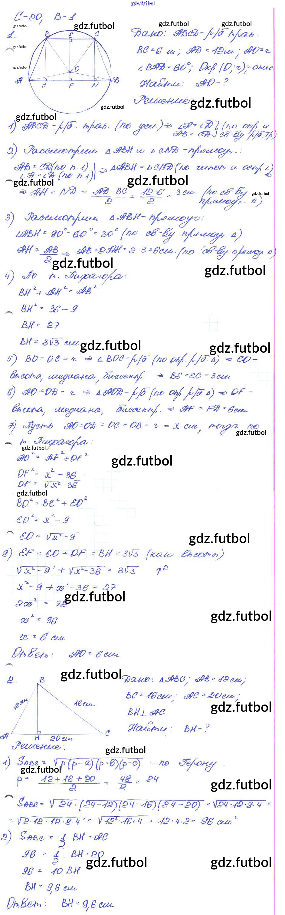 Готовые домашние задания по Геометрии за 9 класс Иченская Самостоятельные и контрольные работы 2017 ФГОС - СР-20. Варианты 1
