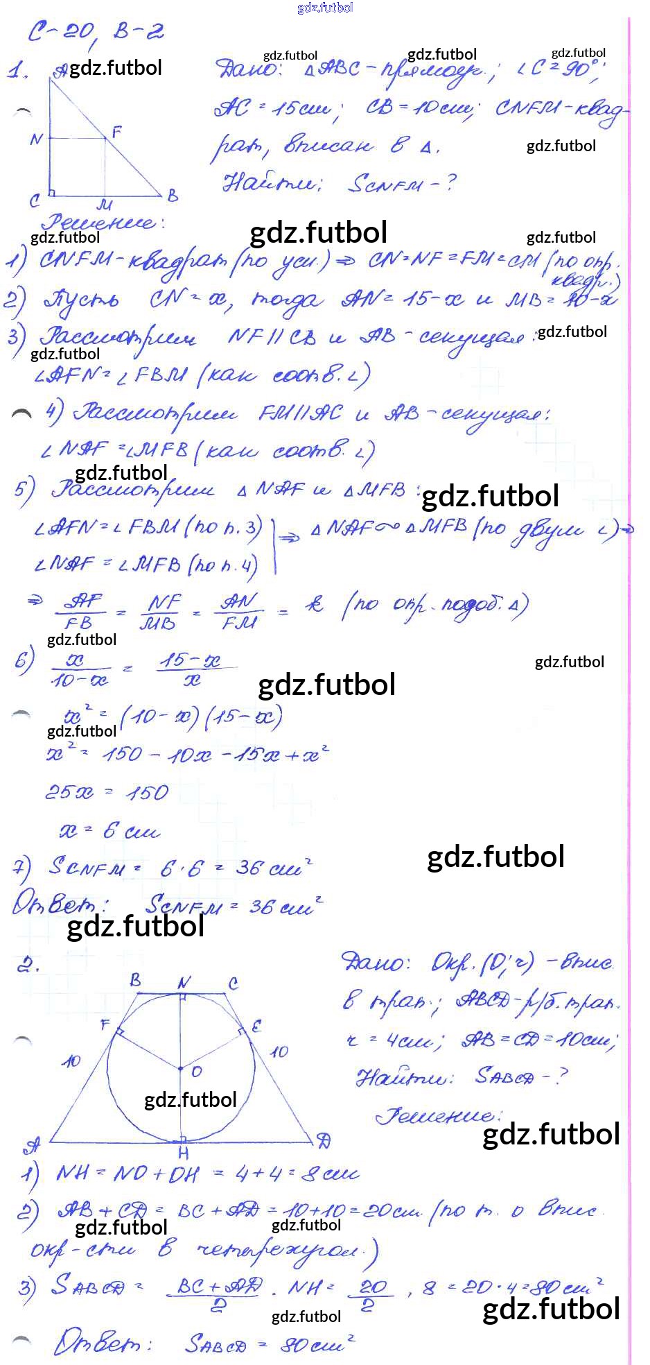 Готовые домашние задания по Геометрии за 9 класс Иченская Самостоятельные и контрольные работы 2017 ФГОС - СР-20. Варианты 2