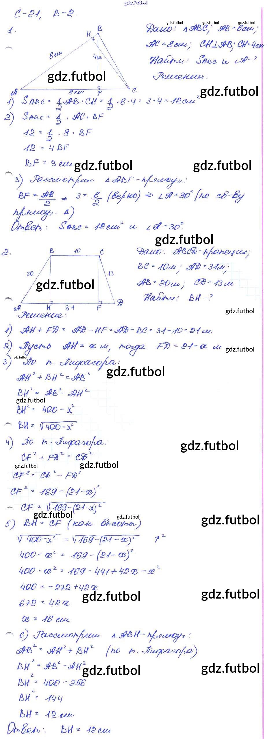 Готовые домашние задания по Геометрии за 9 класс Иченская Самостоятельные и контрольные работы 2017 ФГОС - СР-21. Варианты 2