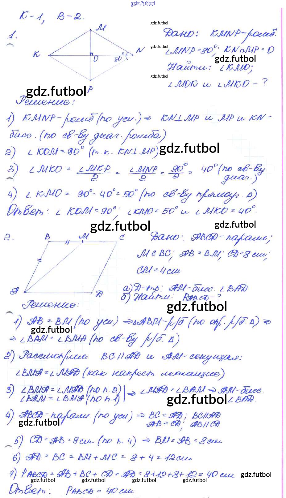 Готовые домашние задания по Геометрии за 9 класс Иченская Самостоятельные и контрольные работы 2017 ФГОС - КР-1. Варианты 2