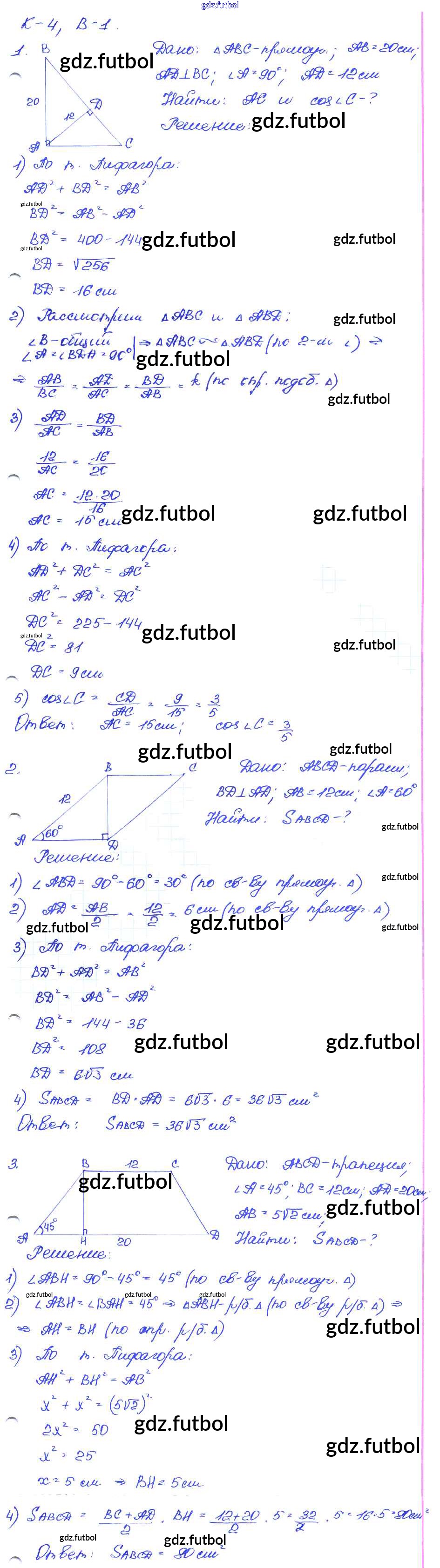 Готовые домашние задания по Геометрии за 9 класс Иченская Самостоятельные и контрольные работы 2017 ФГОС - КР-4. Варианты 1